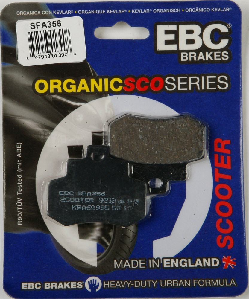 EBC Brakes™ Organic replacement scooter brakes, the SFA series organic range are a great choice for everyday commuter use on modern scooters and lighter motorcycles. SFA pads provide the instantly available stopping power desired for urban scooter brakes.